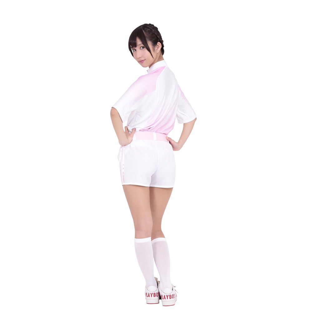 とってもキュートなベースボール&ハンドボールユニフォーム。胸元に「LOVERS 7」のピンク刺繍ワッペンが付いています。上着の肩、前身ごろ、後身ごろにはパステルピンクから白へのグラデーションのストレッチ生地を使いました。白の短パンのサイドには1cm幅のピンクのサテンリボンが2本、ベルト通し7カ所。4.5cm幅、90cm長さのパステルピンクベルト付です。